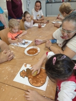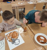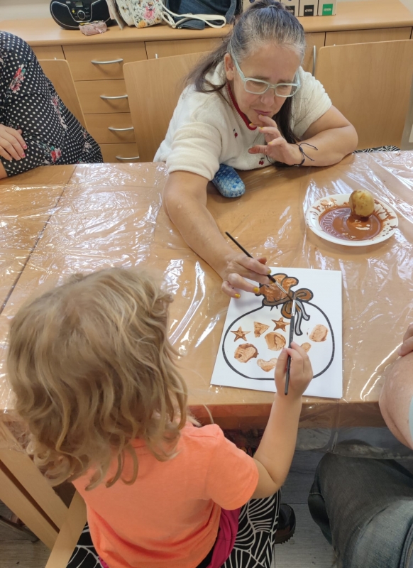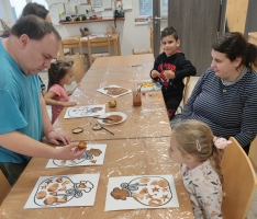 Tvoření uživatelů STD a dětí MŠ Rafík - Uživatelé STD Klíček se spolu s dětmi z MŠ Rafík pustili do "Podzimní sklizně brambor". Z obyčejných brambor vytvořili veselá razítka, kterými naplnili připravené pytle.