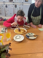 S velkou chutí a nadšením jsme se pustili do míchání těsta, smažení, ochutnávání (to šlo nejlépe) i zdobení. Palačinky se povedly na jedničku a chutnaly skvěle!